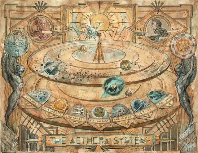 Aethera is a campaign setting for Pathfinder under the OGL. It’s a science fantasy setting within a single solar system, where technology got to about the industrial revolution on the primary human planet before a magical power source (aetherite) was discovered, leapfrogging progress ahead by centuries. Once in space, the humans discovered gateways left by a lost race, enabling transport between the major bodies of the system (planets, the stars, an asteroid belt). This did not result in peaceful contact, as the resource-needy humans (and their creations) promptly proceeded to start a century-long war with the first species they discovered, the erahthi. This conflict ended with the arrival of a taur invasion fleet, who proceeded to steal one of the erahthi moons despite the combined efforts of the natives. The taur are currently in deep space, with they and their demonic allies thrown into disarray by one of the features of the solar system – the entire system is locked away from the astral plane and, thus, all of the outer planes. This makes Aethera a campaign setting without any gods, and without access to much standard transport magic (the teleport spell, for example, uses the astral plane, and so does not function in Aethera).
